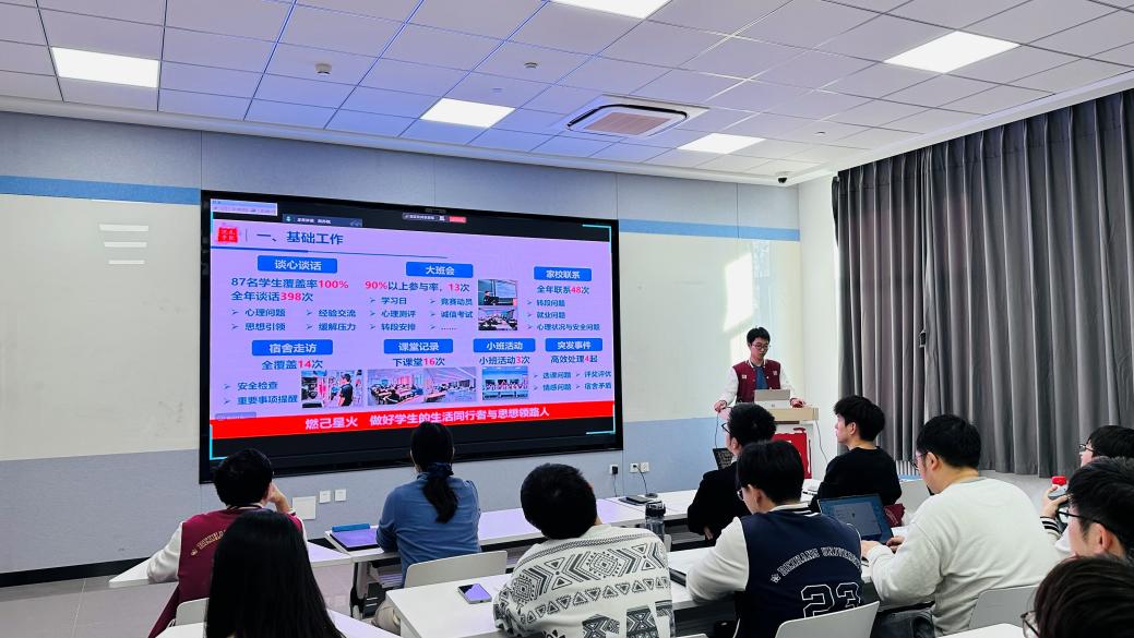 会上,各位兼职辅导员依序登台述职,围绕基础工作、专项工作、特色工作和未来展望四大板块,聚焦思政引领、党团建设、学业支持、身心健康、文艺宣传、安全稳定等核心工作,全面梳理了过去一年的履职情况。各位兼职辅导员结合所带班级实际,用具体数据、典型案例展现工作亮点的同时,坦诚剖析履职过程中存在的不足,并立足岗位实际,明确了下一步的改进方向和工作计划。