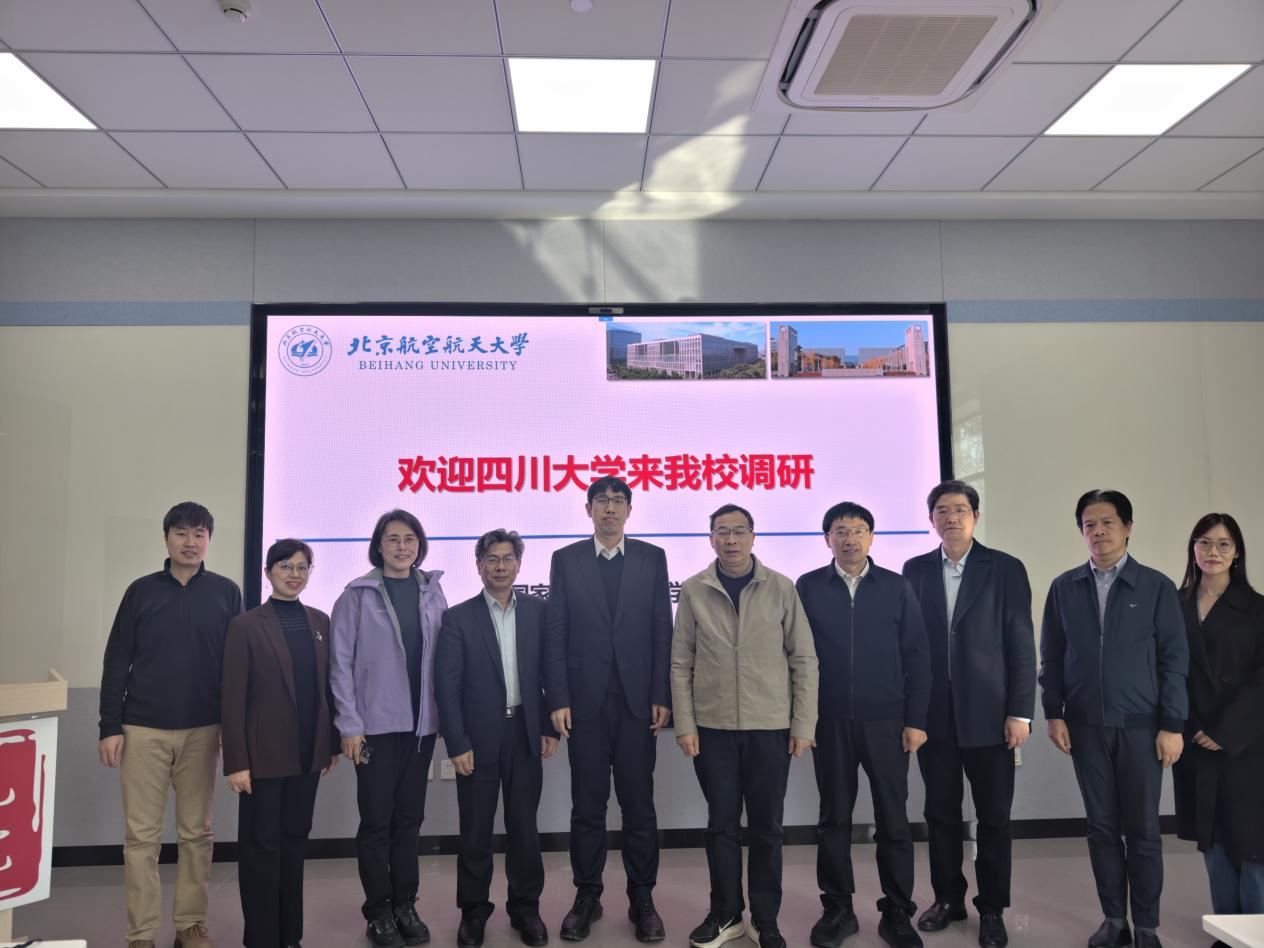3月19日,四川大学副校长、卓越工程师学院院长游劲松,研究生院常务副院长李忠明等一行8人赴北航开展调研。北航副校长、国家卓越工程师学院院长赵巍胜、国家卓越工程师学院常务副院长曹庆华、党委常务副书记蒋燕玲等接待调研。